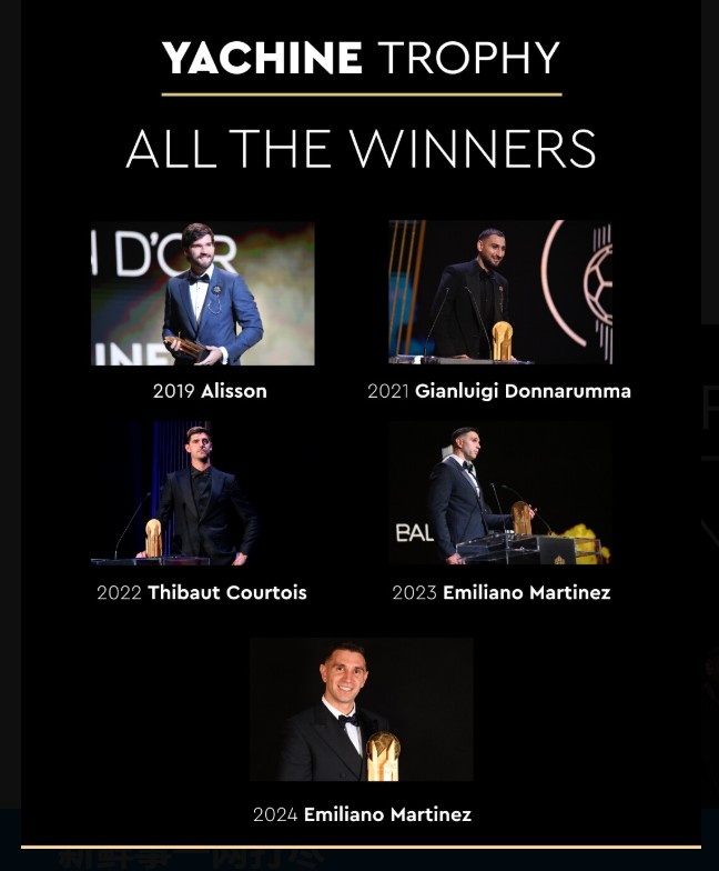 雅辛奖是由《法国足球》于2019年设立的足球奖项,旨在表彰年度最佳门将。该奖项以列夫-雅辛的名字命名,他是唯一一位获得金球奖的门将(1963年)。