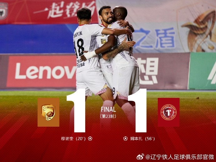 最终,辽宁铁人农商银行凭借姆本扎的进球客场1-1逼平大连鲲城。本场比赛有超过1000名铁人球迷远征大连,感谢你们与球队风雨同舟共同战斗,我们下周铁西体育场见!